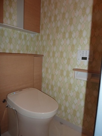 リピーターの方よりご注文いただきました。経年約16年で内装貼り替えを含めたトイレリフォームをご検討中でした。内装のガラリ一新で色鮮やかになりました。
