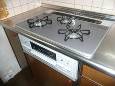 リピーターの方よりご紹介いただきました。経年約13年で大バーナー点火不良となってしまいました。これを機に明るいトッププレートのものに買替をされたいということで全交換させていただきました。