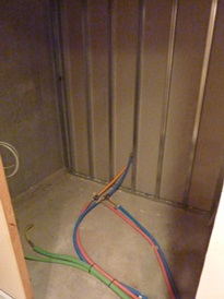 浴槽横インテリアバー、ドア額縁、ランドリーパイプ2本、暖房付ガス給湯器
